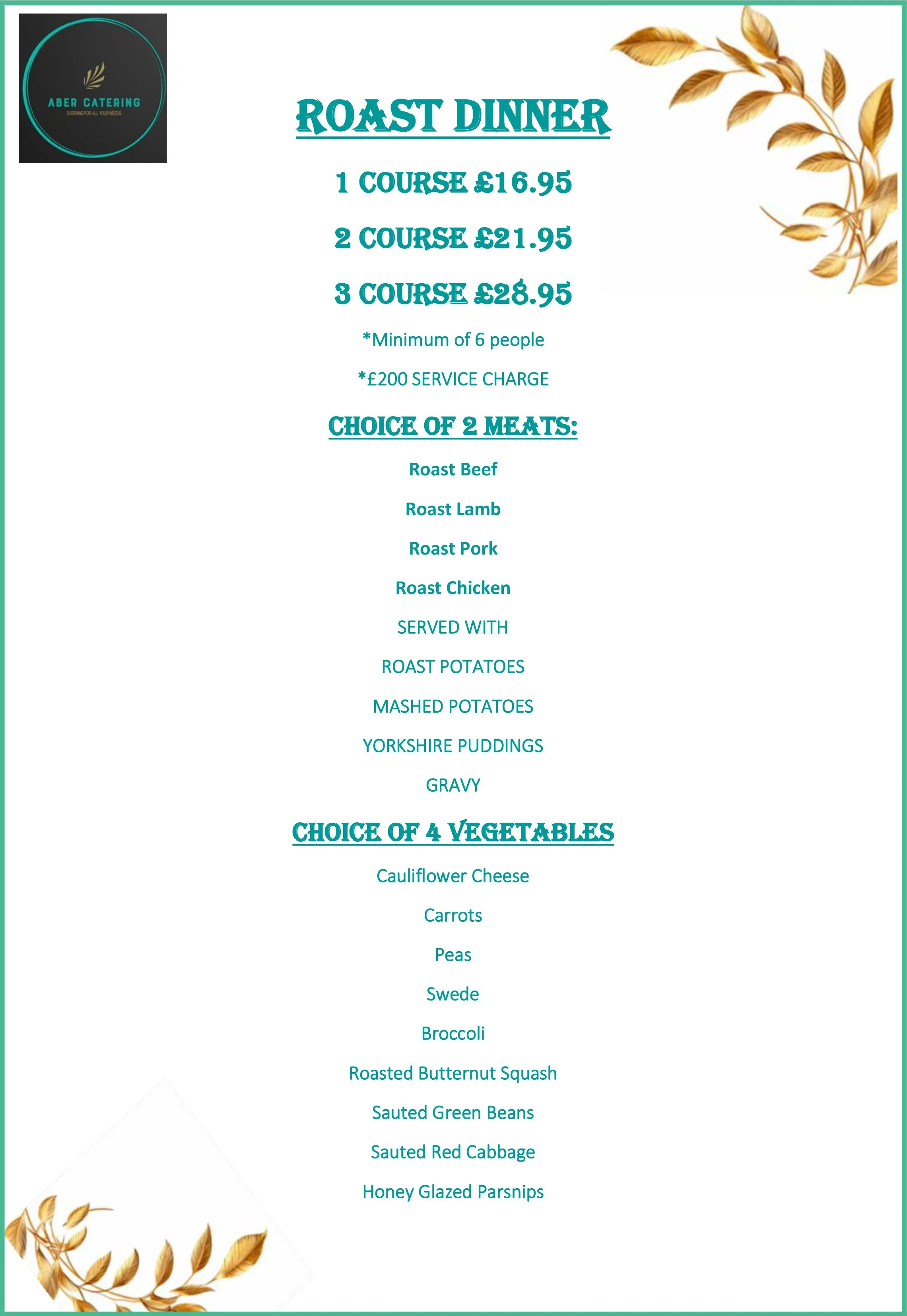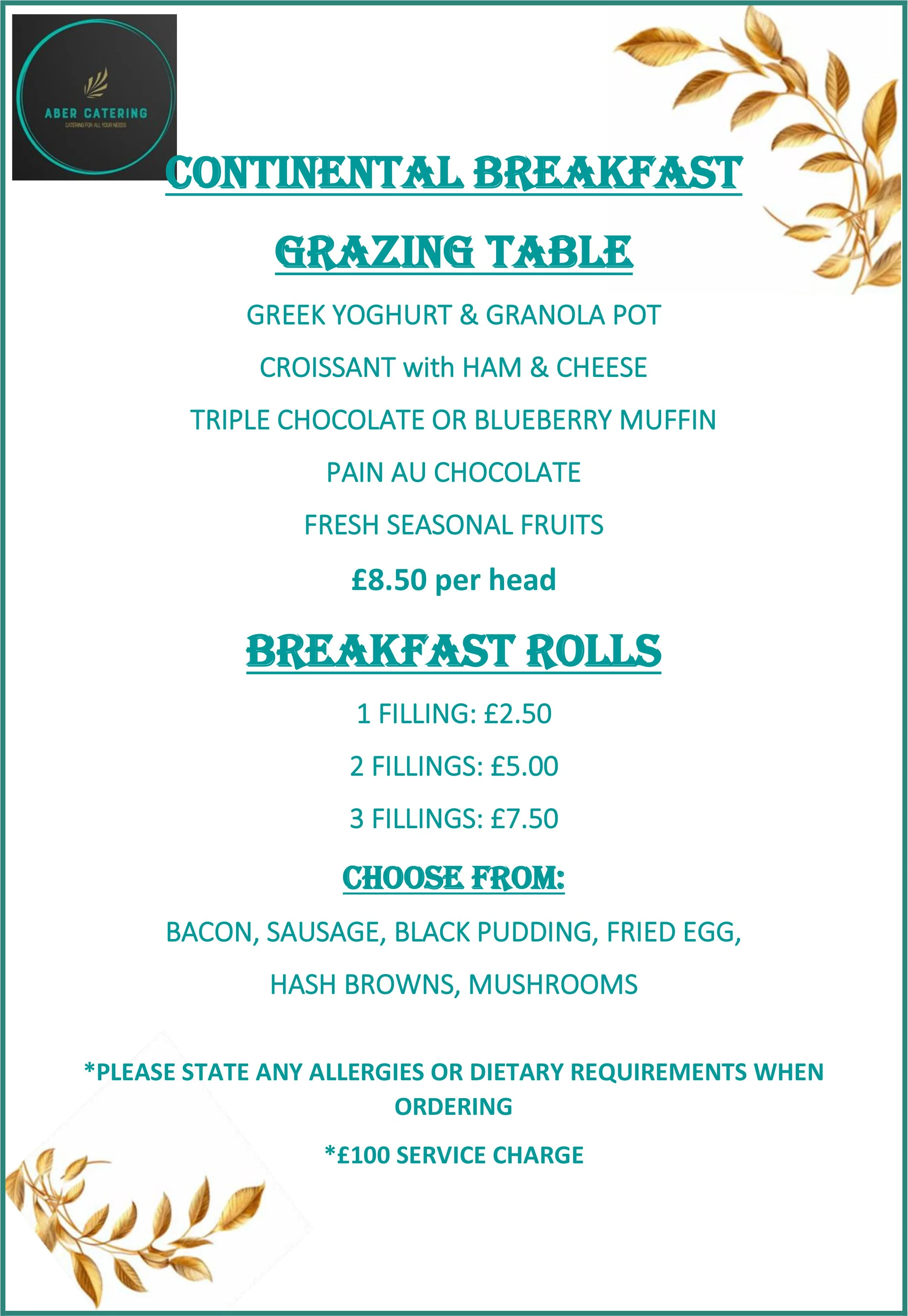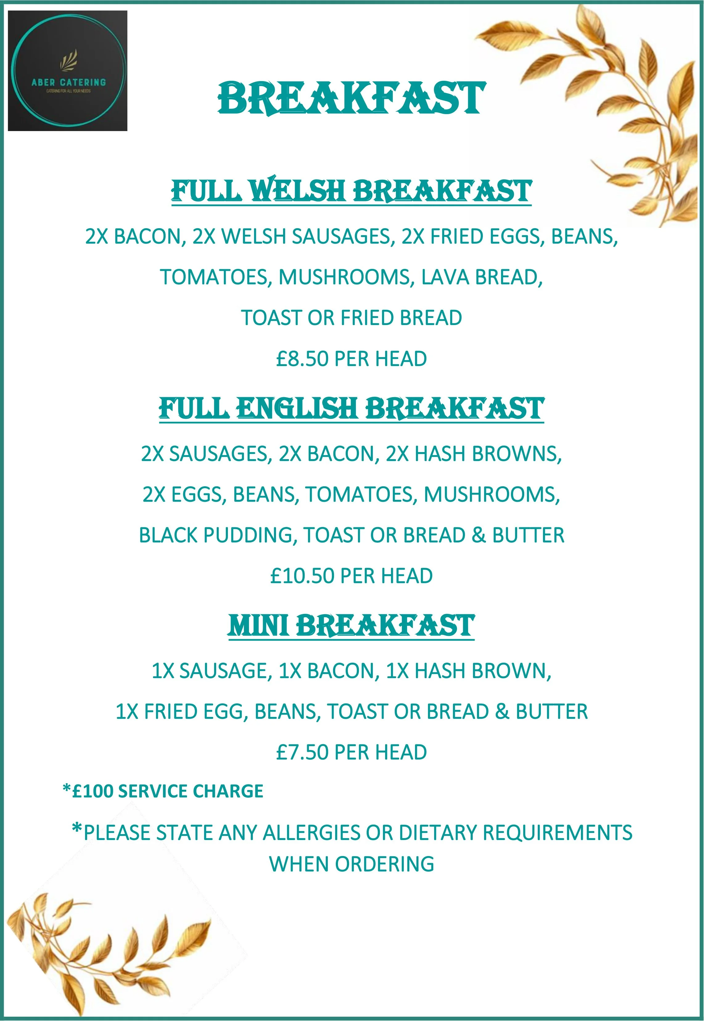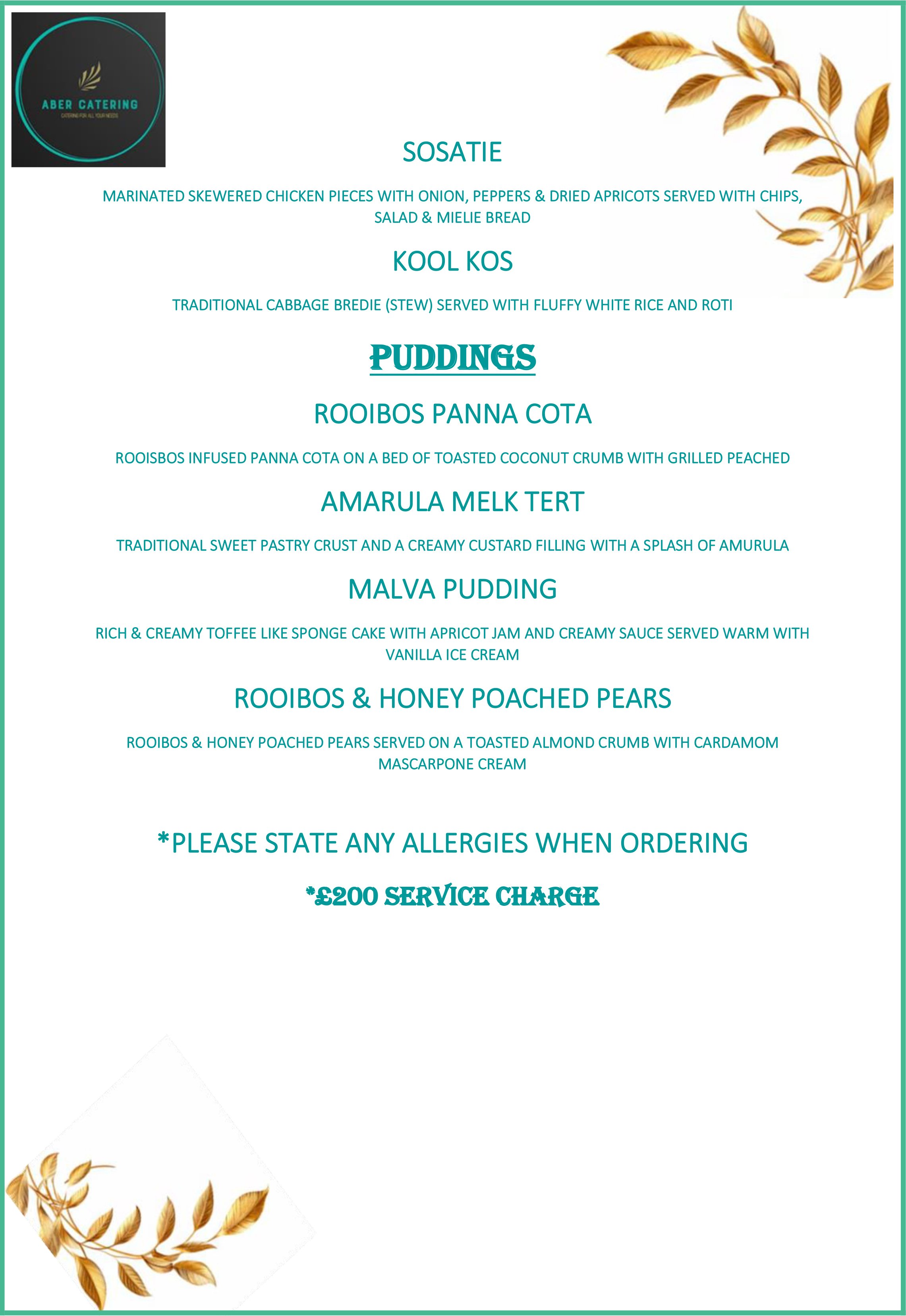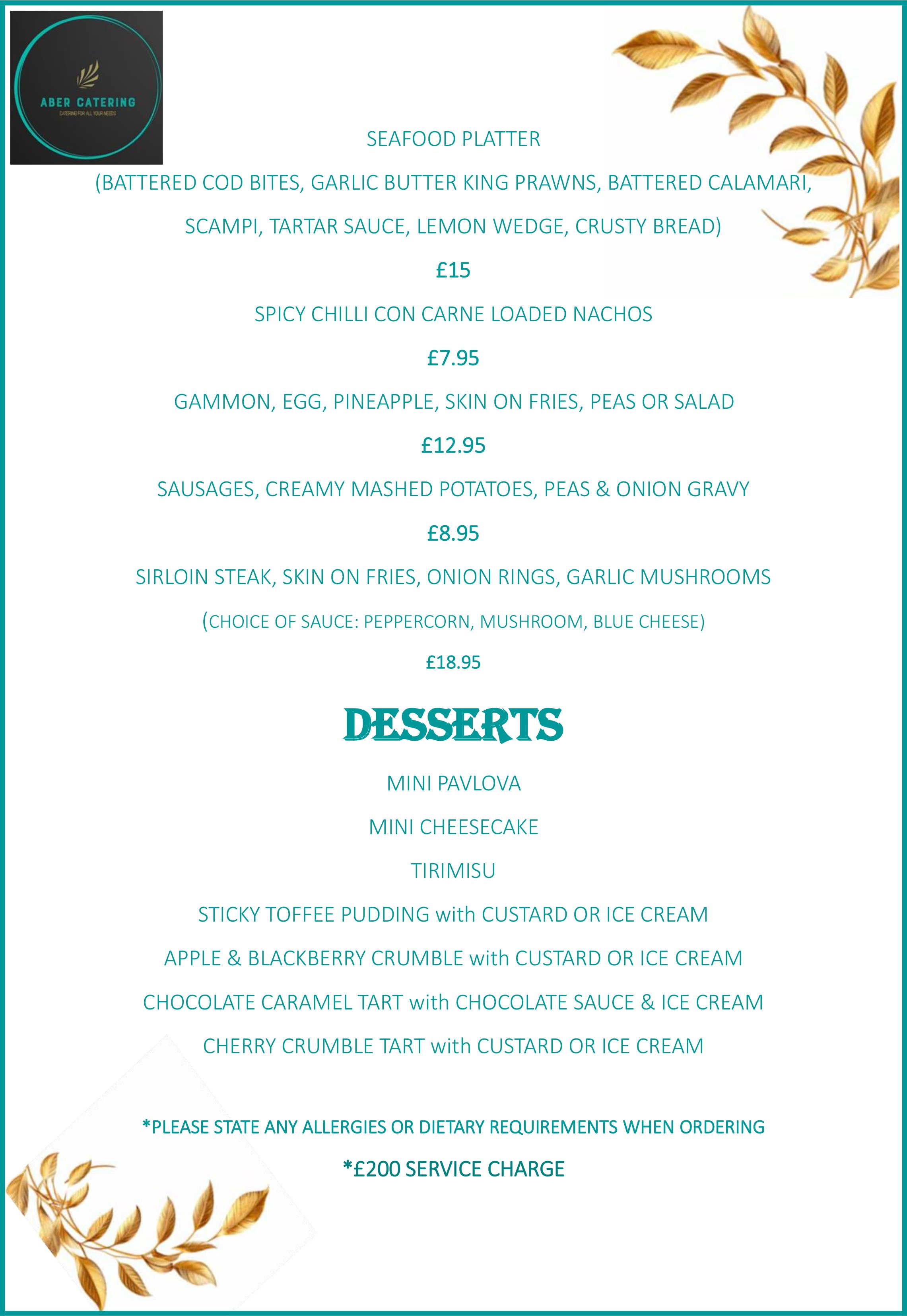 SERVICE CHARGES APPLY. PLEASE ASK WHEN ORDERING